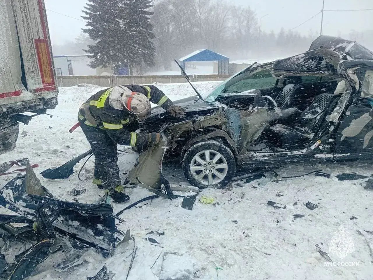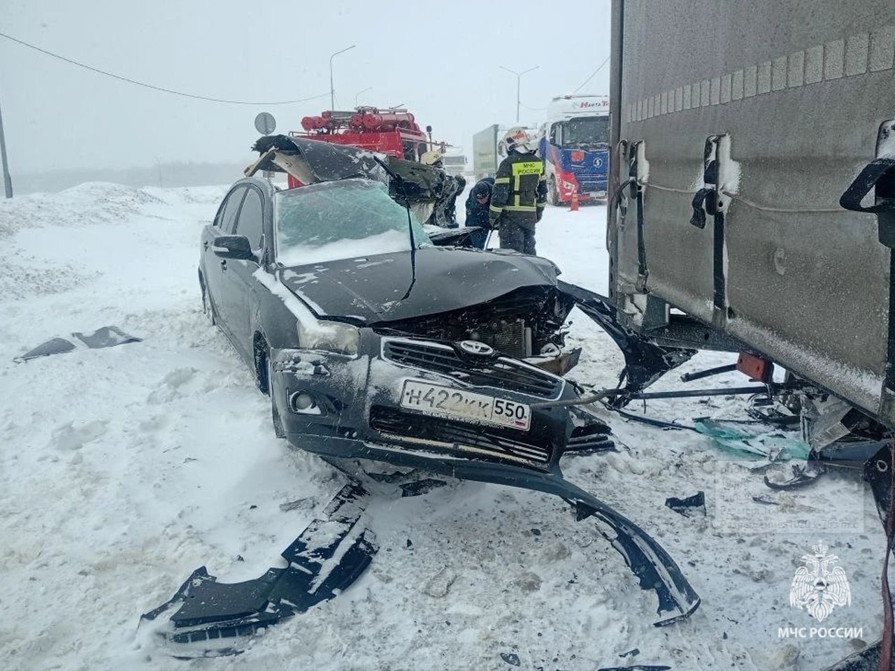 Авария с фурами произошла там восемь часов назад на фоне сильной метели и плохой видимости. С тех пор движение по-прежнему ограничено. Произошло ещё несколько серьёзных ДТП.