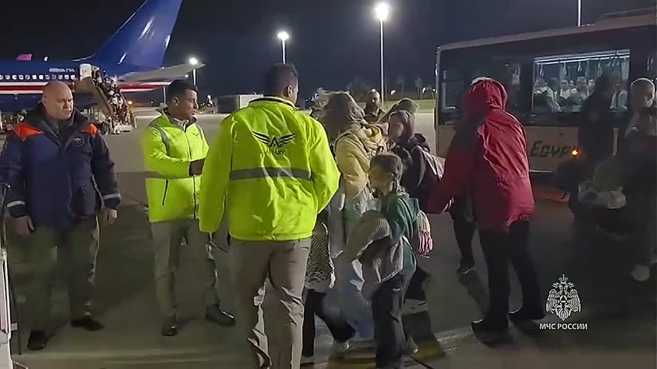 Кадры прибытия в РФ российских граждан, вывезенных из Израиля через Египет, показало МЧС.