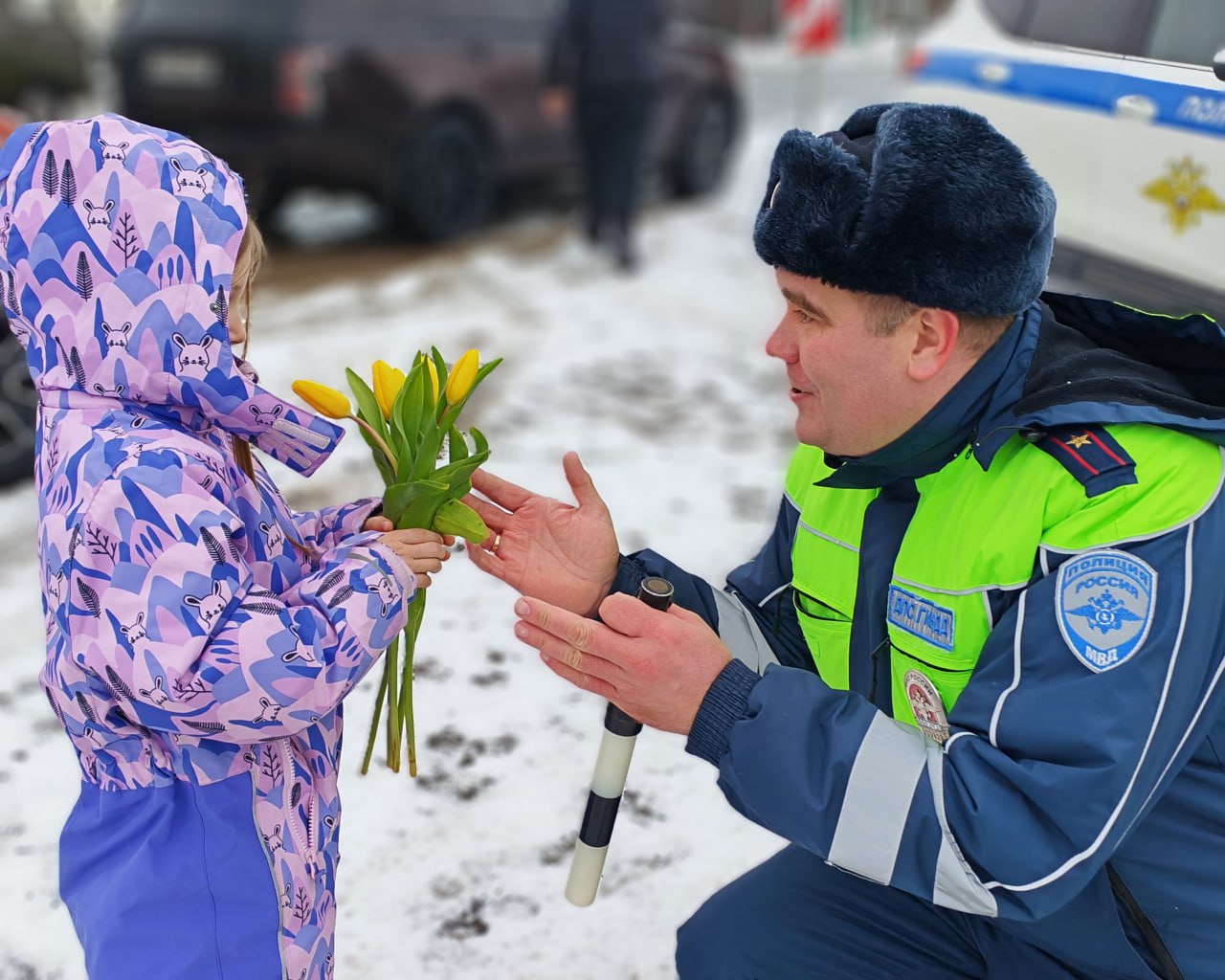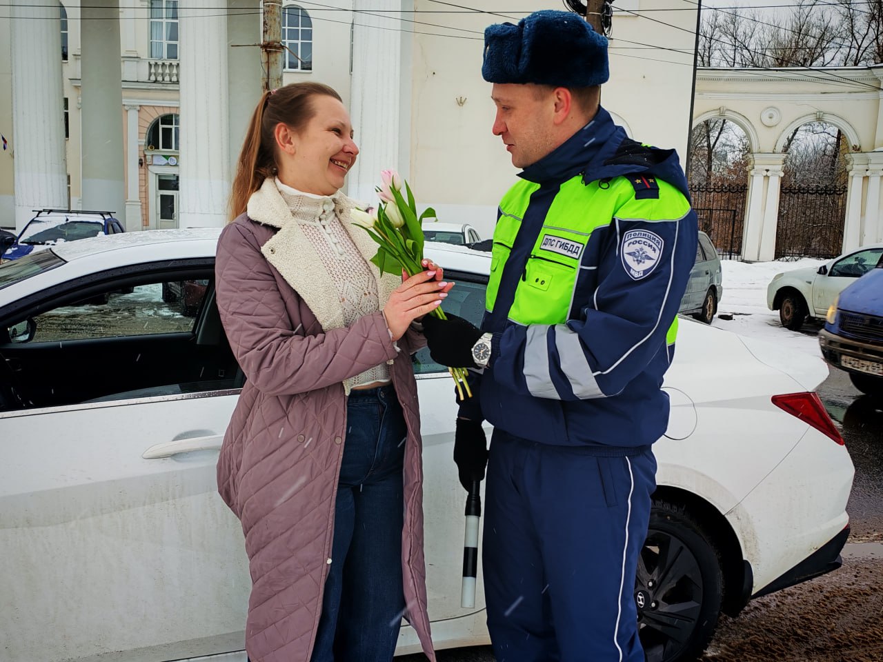 06 марта тверские автоинспекторы присоединились к Всероссийской акции «Цветы для автоледи»