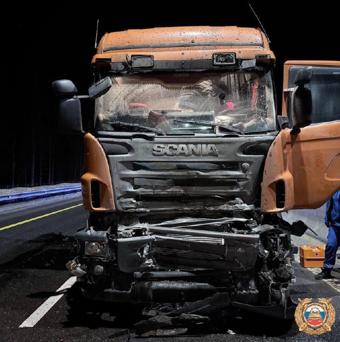 Вчера вечером на 205-м километре скоростной автомагистрали М-11 «Нева» в Калининском округе столкнулись два большегруза.