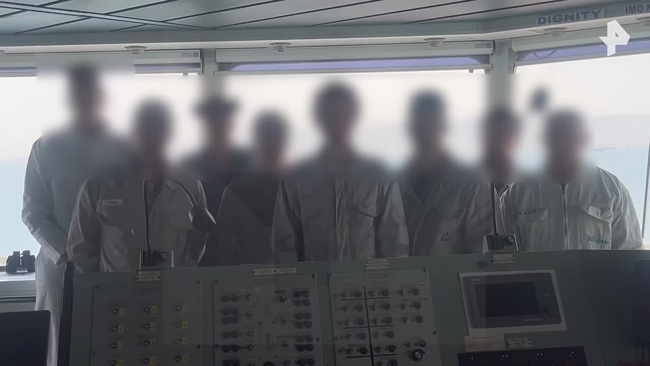 Кадры с обесточенного танкера "Дигнити" с российским экипажем публикует РЕН ТВ. Судно находится под арестом на якорной стоянке в египетском порту Суэц с сентября 2025 года.
