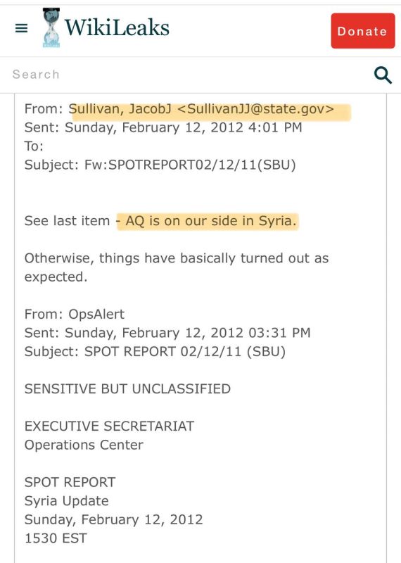 Советник по национальной безопасности Джейк Салливан писал Хиллари Клинтон в 2011 году: «Аль-Каида на нашей стороне в Сирии».