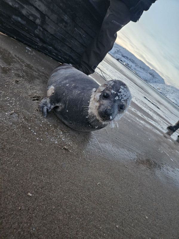 Раненого тюленя нашли на берегу Баренцева моря в Териберке Мурманской области.