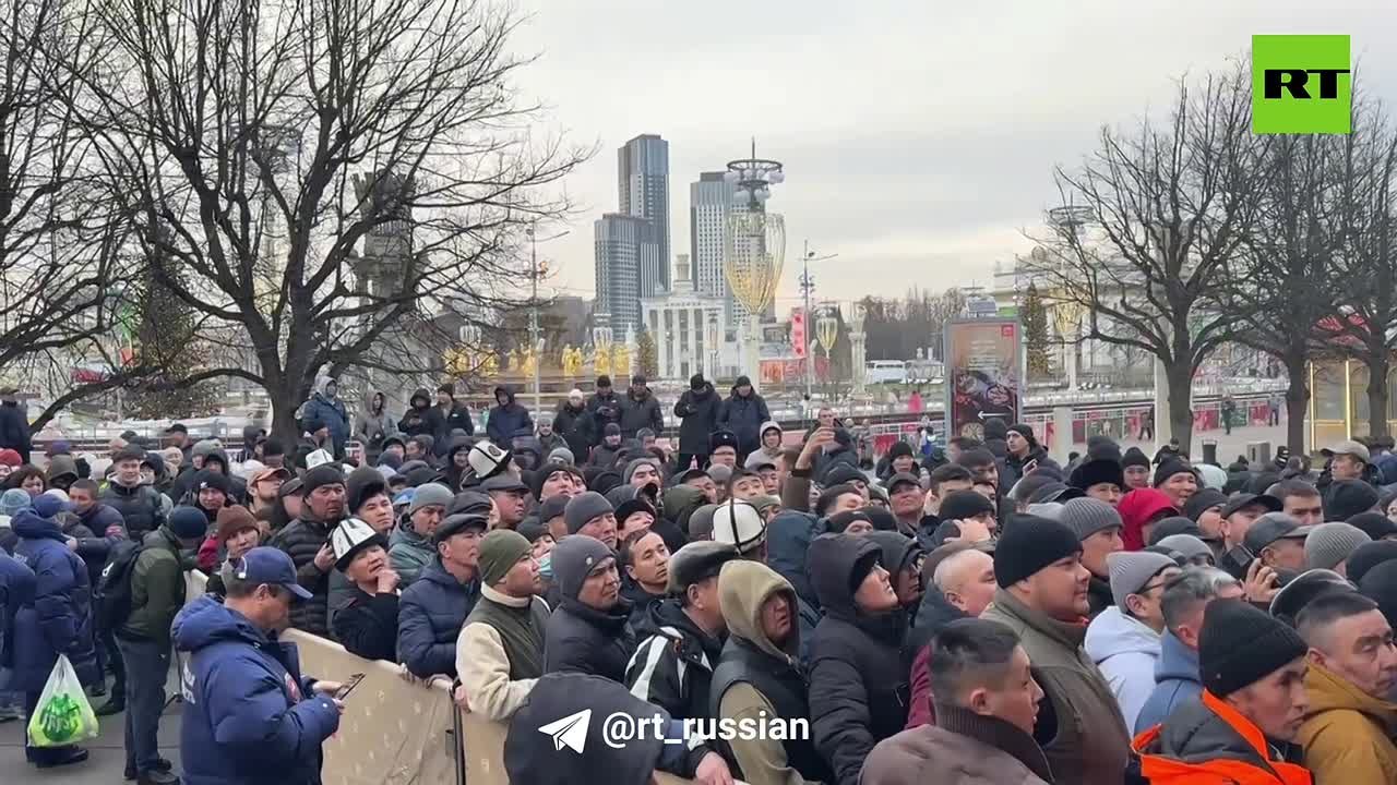 Огромная очередь собралась перед избирательным участком на ВДНХ в павильоне «Киргизия». Там проходят выборы в парламент страны.