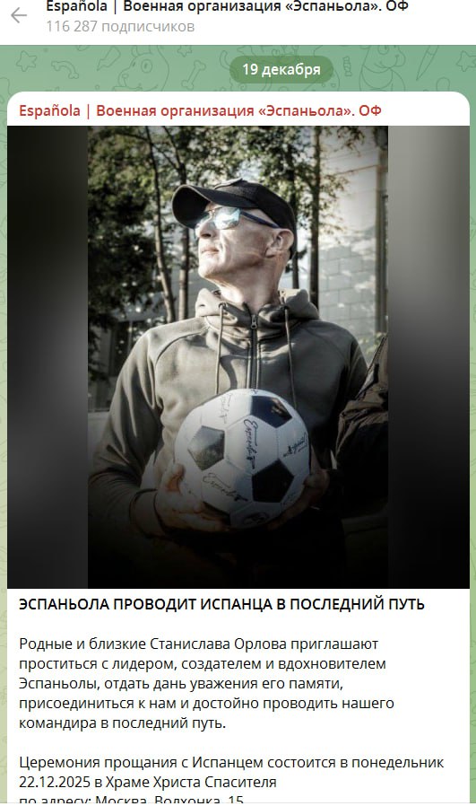 Сегодня окончательно подтвердились слухи о смерти Станислава Орлова с позывным «Испанец» — основателя добровольческого формирования «Эспаньола». Теперь можно сказать, что оно окончательно прекратило существование.