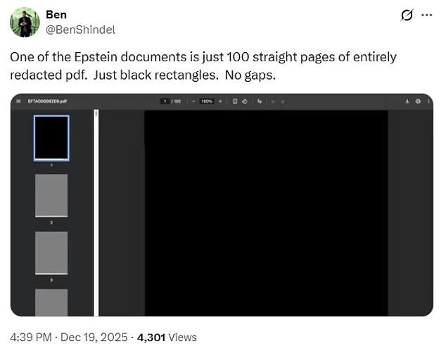 Файлы Эпштейна. Реальность против ожиданий. Один из документов- это просто 100 черных страниц. «Мы откроем все»,- обещали они.