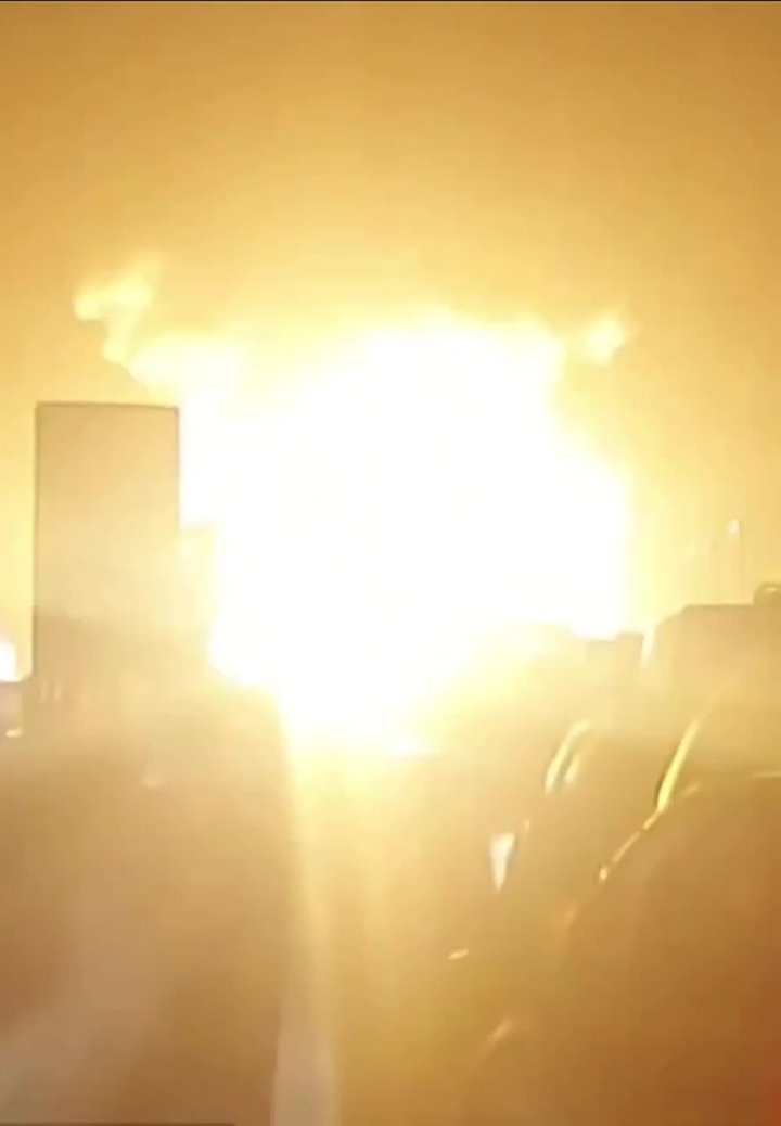 На кадрах из соцсетей можно заметить, что в результате взрыва образовалась огненная воронка в центре автострады. По данным местных пожарных, повреждения получили недалеко стоящие магазины и рестораны.