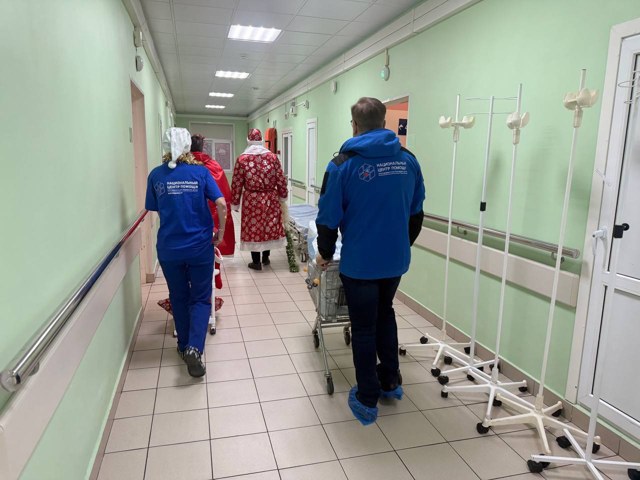 В конце декабря Национальный центр помощи пропавшим и пострадавшим детям провел новогоднюю акцию. Волонтеры посетили тяжело раненых участников СВО в Главном военном клиническом госпитале им. Н.Н. Бурденко, поздравили их с Новым годом и передали подарки, включающие предметы, которые сделают пребывание в больнице более комфортным.