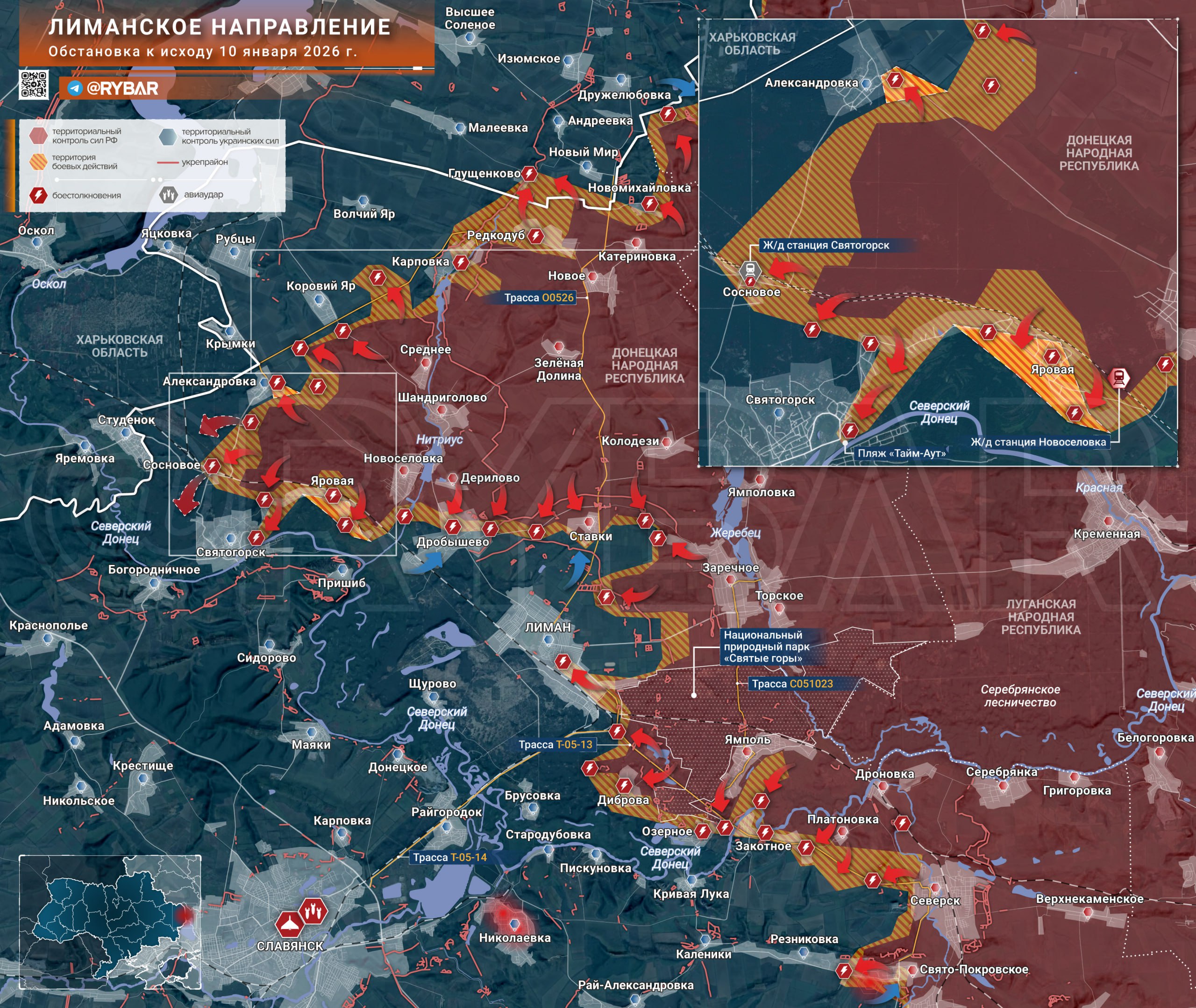 На Лиманском направлении российские войска пытаются закрепиться в Александровке и расширяют свое присутствие в Яровой, идут бои на подступах к Святогорску.