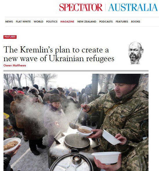 ‘Цель Кремля — создание новой волны украинских беженцев. Таким способом Путин хочет оказать давление на европейские столицы и принудить их к согласию на окончание войны на его условиях’ - Оуэн Мэтьюз из Spectator делится своими фантазиями.