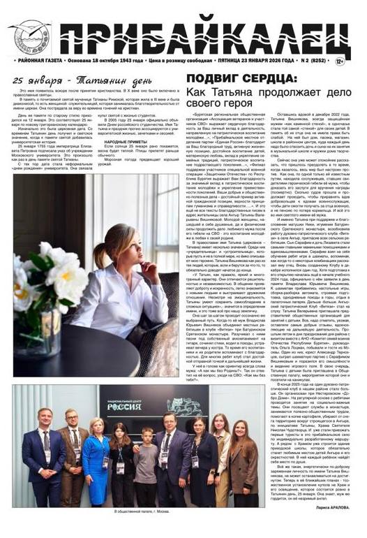 В газете «Прибайкалец» вышла статья о подвиге Татьяны Вишняковой, вдовы героя СВО Владислава Вишнякова, которая самоотверженно продолжает дело своего мужа.