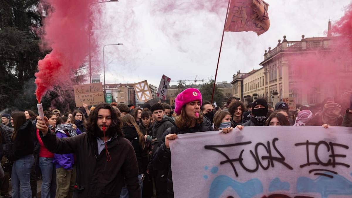 пока спортсмены, актёры и музыканты несли факел, в Милане 2 тыс. студентов собрались на митинг против присутствия агентов американской иммиграционной службы. Они жгли фаеры и требовали выдворить ICE;