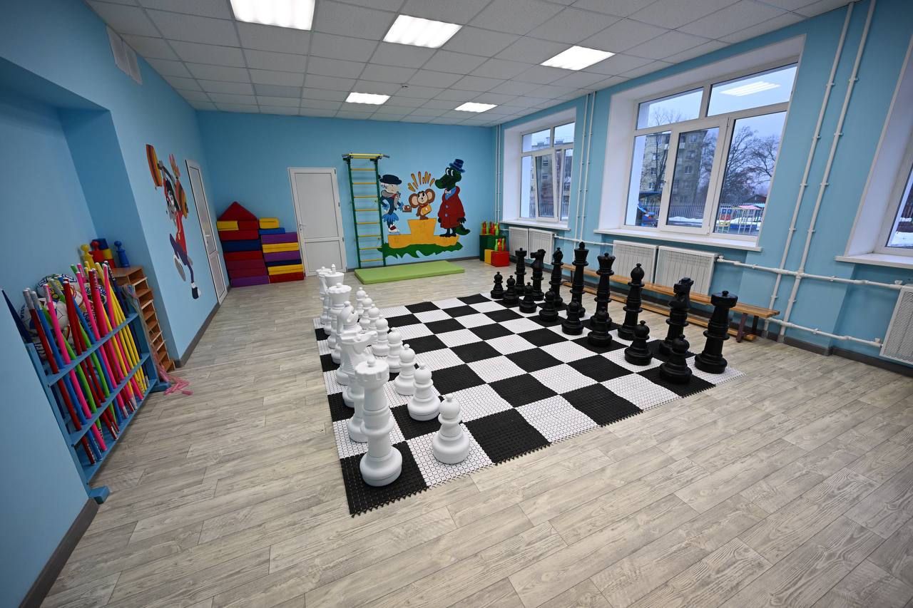 В детском саду «Радуга» в Мариуполе посмотрел творческие номера детишек с песнями и танцами. Отметил важные слова в одном из стихотворений, что это не просто здание для юных воспитанников, а уютный дом, и празднуют они в нём новоселье. Такие утверждения полностью соответствуют нашей задаче по нацпроекту «Инфраструктура для жизни». Всего посещают детсад более 130 детей, для которых под контролем Единого заказчика созданы условия для всестороннего развития. В спортзале даже оборудовали шахматное напольное полотно, в дальнейшем есть планы по сотрудничеству с шахматным клубом.