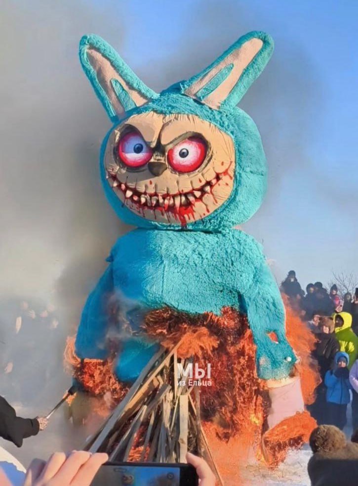 Огромного лабубу сожгли на Масленицу в Липецкой области.