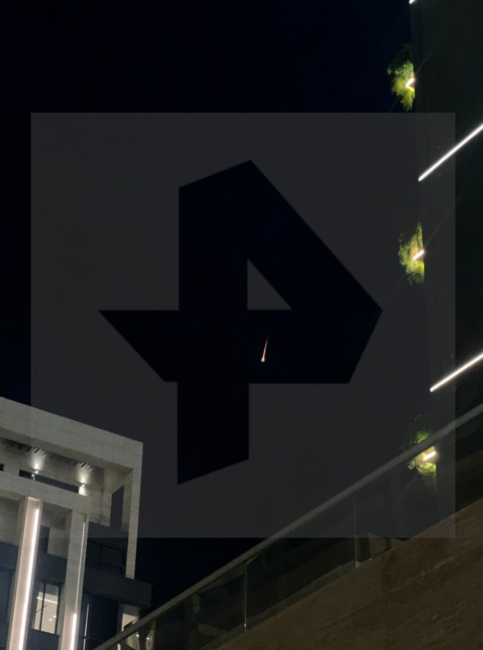 В небе виден летящий объект и облако, вероятно, от сбитой ПВО цели.