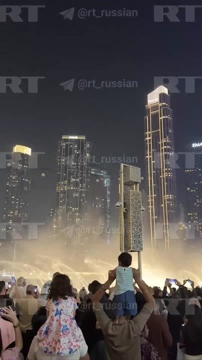 Жители и гости Дубая, несмотря на атаку, собрались на шоу фонтанов у подножия башни «Бурдж-Халифа».