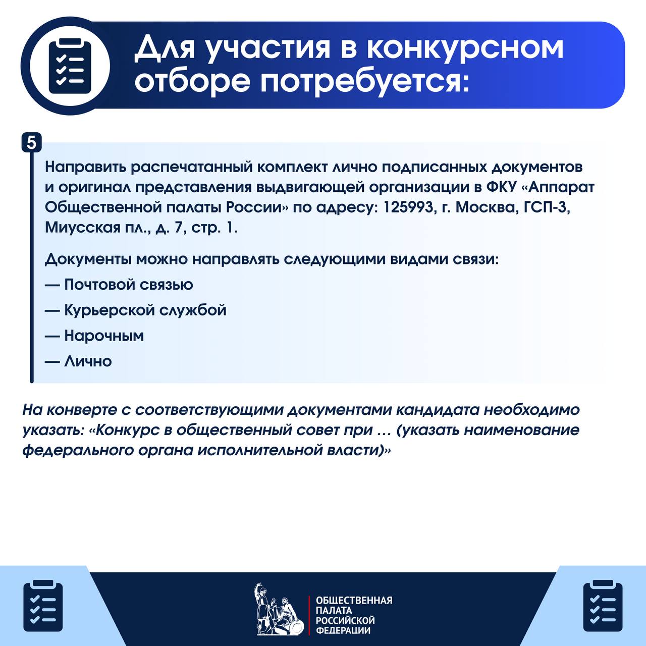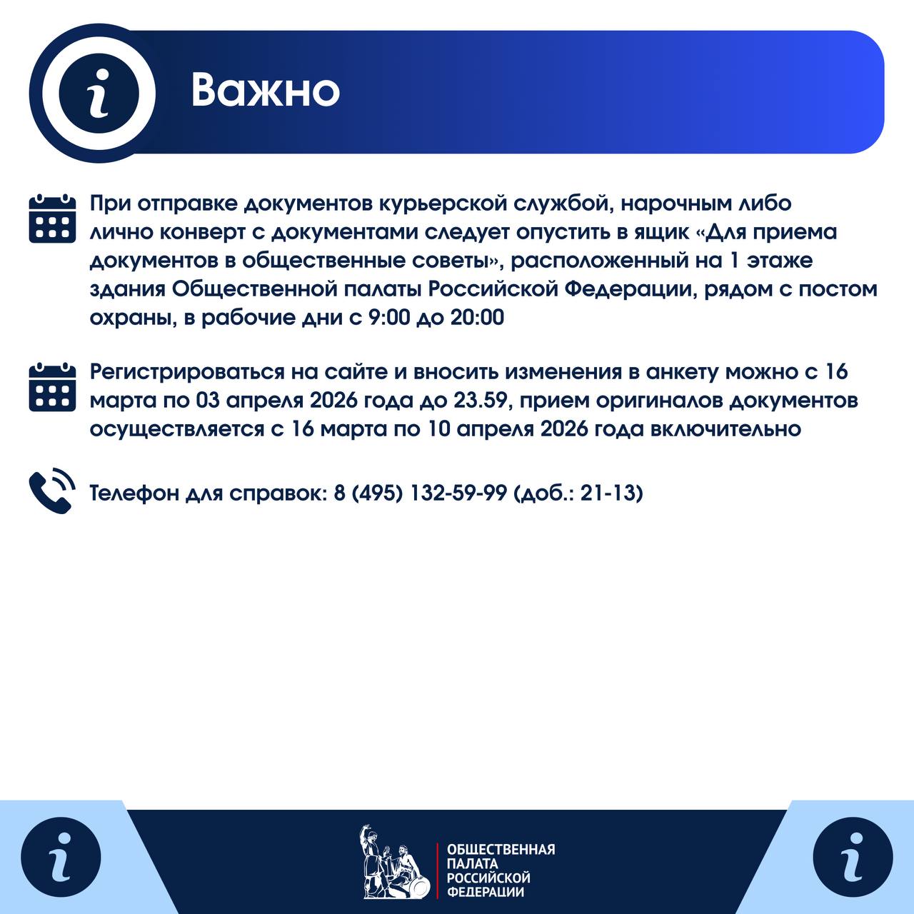 До 3 апреля ОП РФ принимает заявления от граждан, выдвинутых общественными объединениями и негосударственными некоммерческими организациями, для участия в конкурсном отборе в составы общественных советов при: