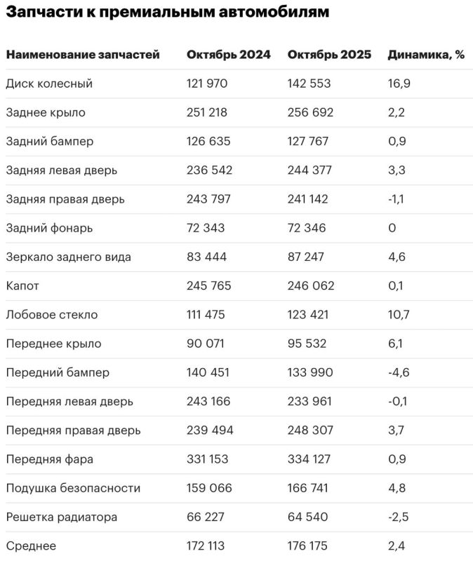 Таблицы и цены Автозапчасти и шины в России в октябре 2025 года подорожали по отношению к аналогичному месяцу прошлого года на 1–41,2%, следует из данных Национального агентства промышленной информации. Лишь единичные позиции немного скинули в...