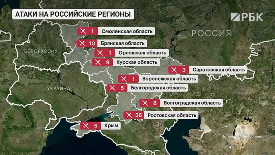 Больше всего беспилотников сбили над Ростовской областью — 36. Десять БПЛА перехватили в небе над Брянской областью, девять — над Курской областью, восемь — над Волгоградской. По пять дронов уничтожили над Крымом и Белгородской областью. Три...