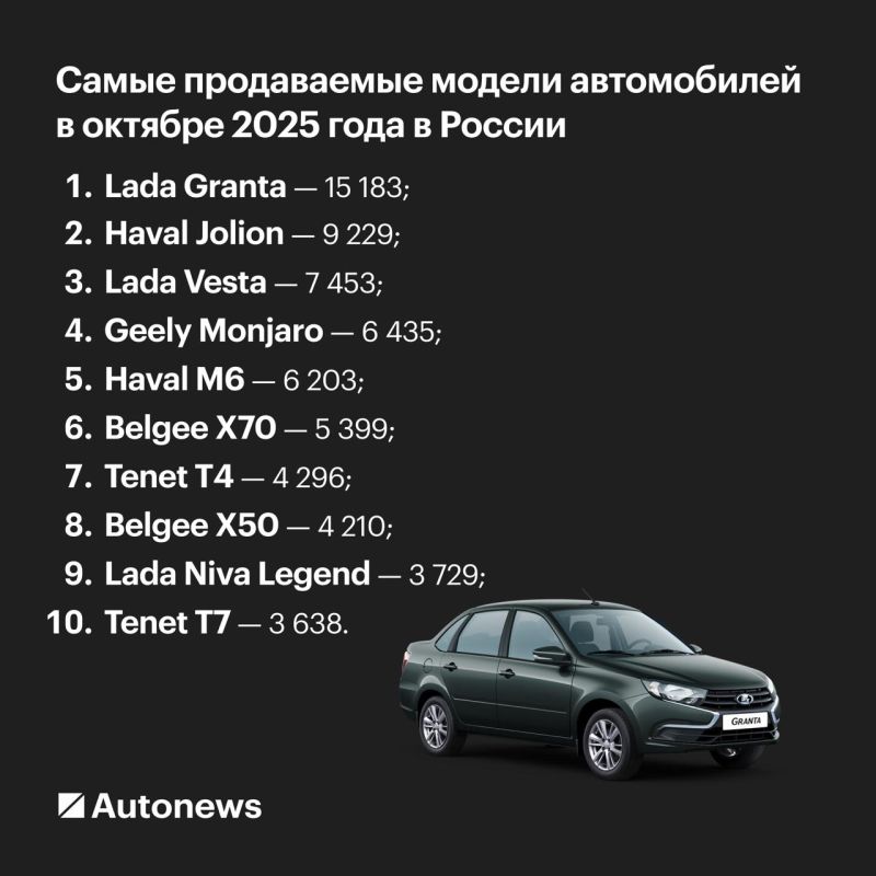 Топ-10 моделей В октябре 2025 года в России продали 165 702 новых легковых автомобиля, что на 3% меньше, чем за аналогичный период годом ранее. Однако в сравнении с сентябрем показатель вырос сразу на 35%. Такие...