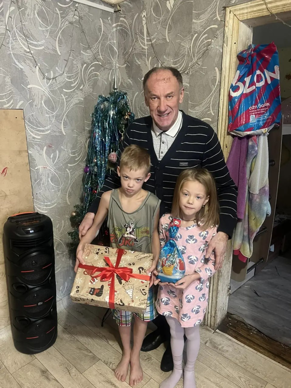Председатель комитета по социальной политике Артур Бабушкин поздравил юных жителей пос.Красномайский Вышневолоцкого округа – брата и сестру Ивана и Гелю. Исполнил пожелания ребят и вручил им игрушечную винтовку и сладкие подарки.