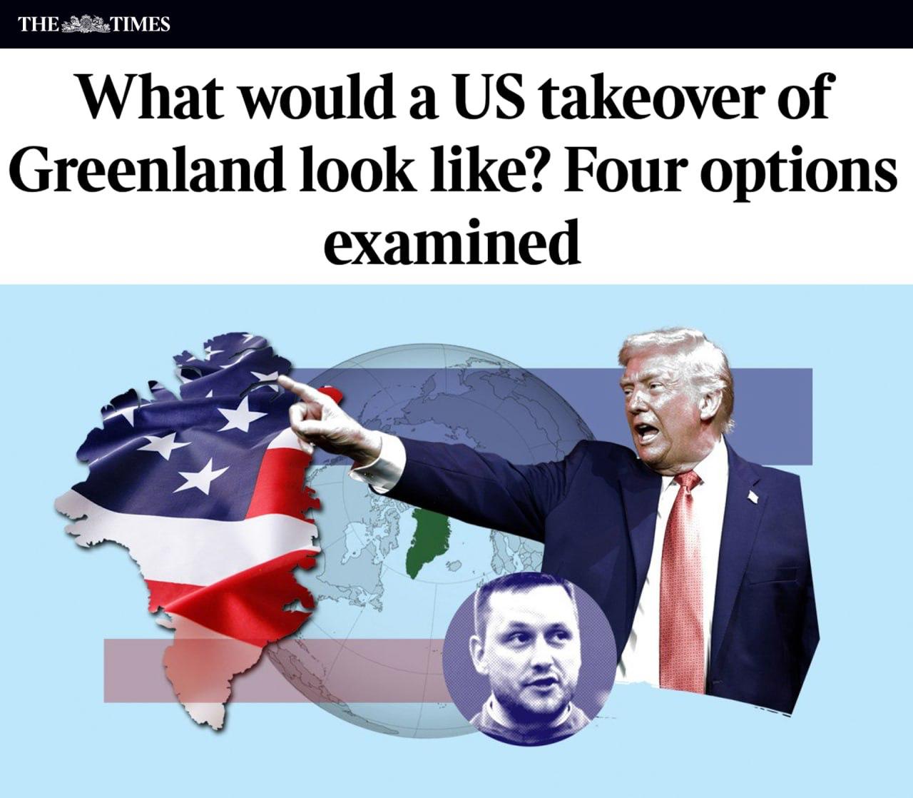 Ранее британская газета The Times описала четыре возможных варианта присоединения Гренландии к США. Один из них — вторжение на остров и оккупация территории.