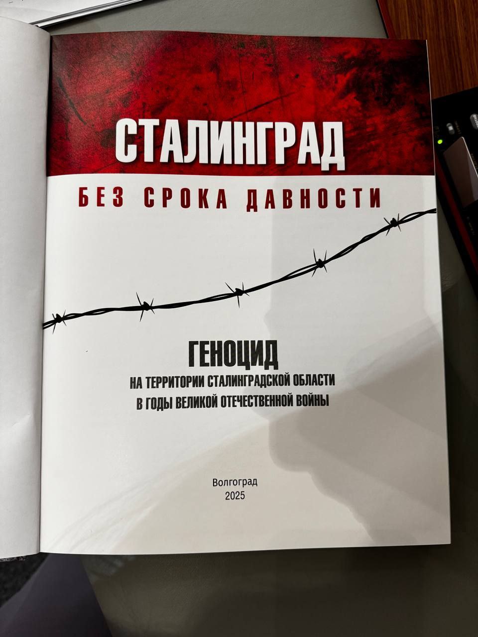 Сегодня в зале заседаний Думы каждый депутат получил вот такую замечательную книгу – «Сталинград. Без срока давности». Книга создана по инициативе волгоградского ветеранского сообщества, в ней собраны уникальные архивные документы, воспоминания фронтовиков, жителей Сталинграда. Также в основе книги – материалы судебного процесса, состоявшегося в Волгоградском областном суде летом 2023 года. Тогда суд признал геноцидом действия нацистов под Сталинградом. Тот же геноцид фашисты творили над жителями блокадного Ленинграда и еще миллионами советских людей в годы Великой Отечественной войны. Эти преступления нацизма должны быть признаны. И у них действительно нет срока давности.