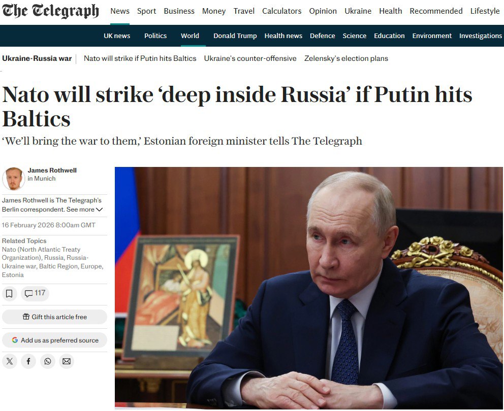 ‘Прежние планы сводились к тому, что если Россия нападет, то НАТО наконец-то выиграет войну. В таком случае эстонцев не останется. Поэтому нас такие планы не интересуют. Поэтому наш план – атаковать Россию. Мы не можем позволить России войти в страны Балтии и [только] после этого дать отпор’.