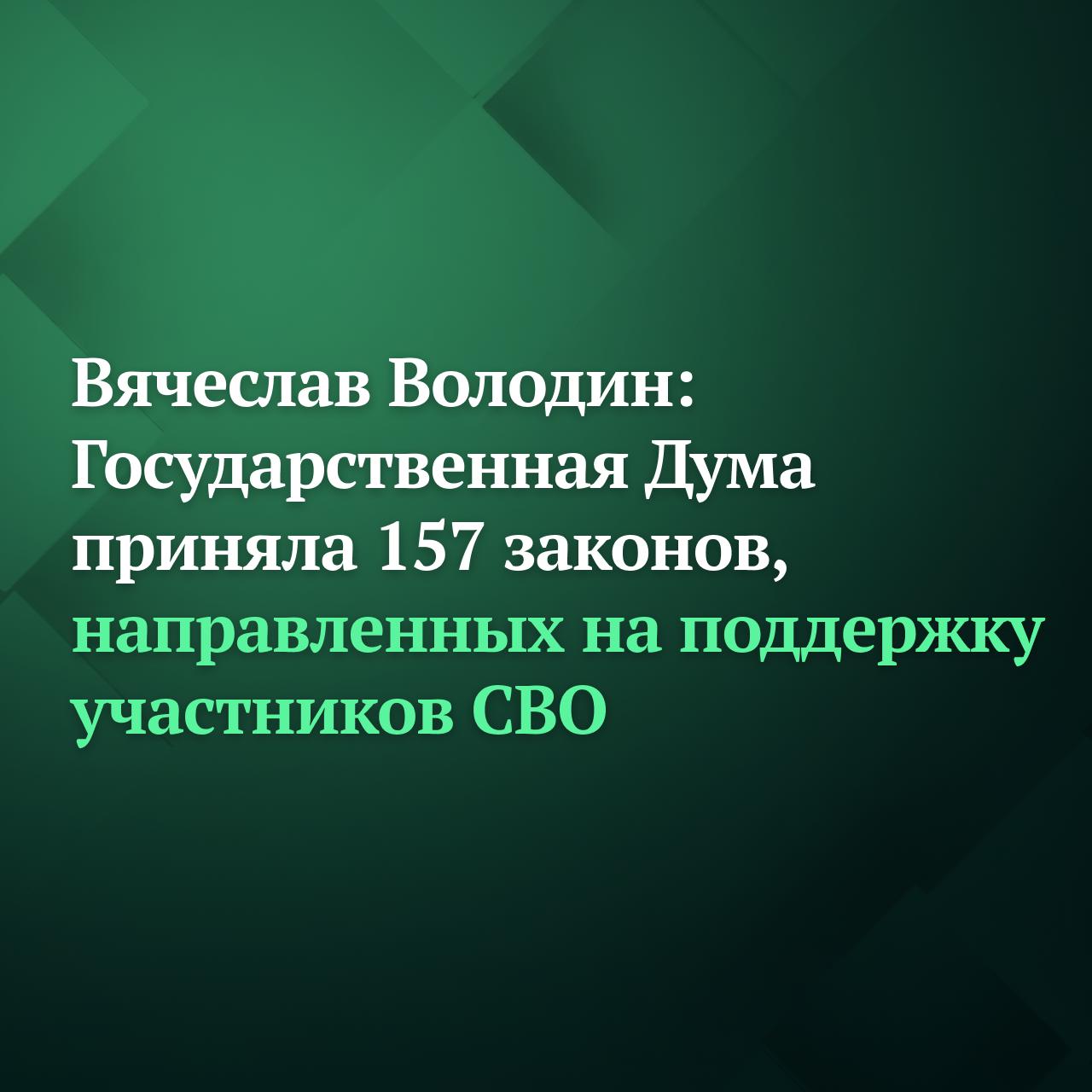 «Принятие закона станет ещё одной дополнительной мерой поддержки участников спецоперации», — отметил Вячеслав Володин. По его словам, «решение этих вопросов — приоритет в повестке Государственной Думы». «С 2022 года принято 157 законов. Многие из них инициированы депутатами», — отметил Председатель ГД.