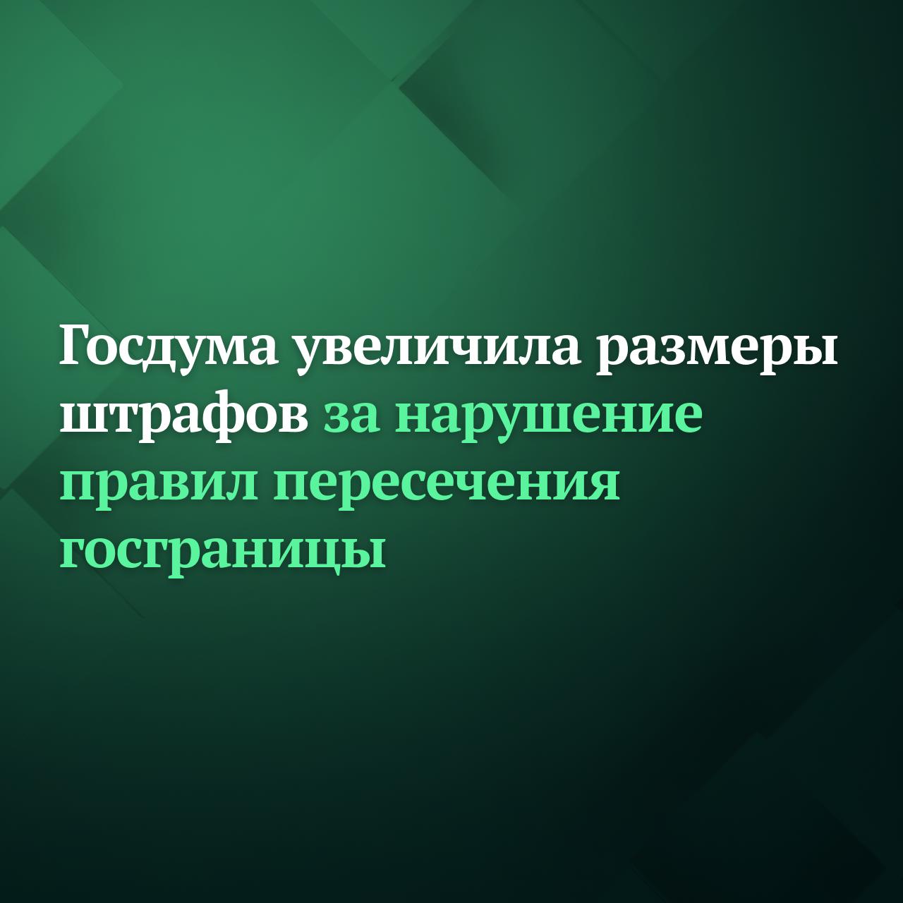 Депутаты Госдумы на пленарном заседании приняли сразу во втором и третьем чтениях законопроект, который увеличивает в несколько раз размеры штрафов за нарушение правил пересечения госграницы.