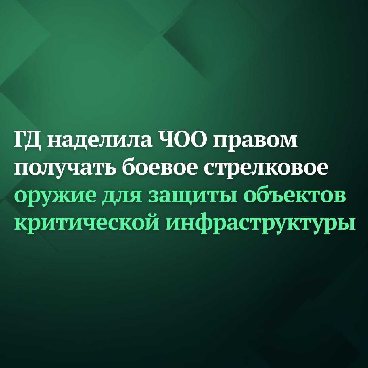 Госдума приняла во втором и третьем чтениях изменения в Федеральный закон «Об оружии» и отдельные законодательные акты РФ в части повышения антитеррористической защищённости и усиления охраны объектов критической инфраструктуры.