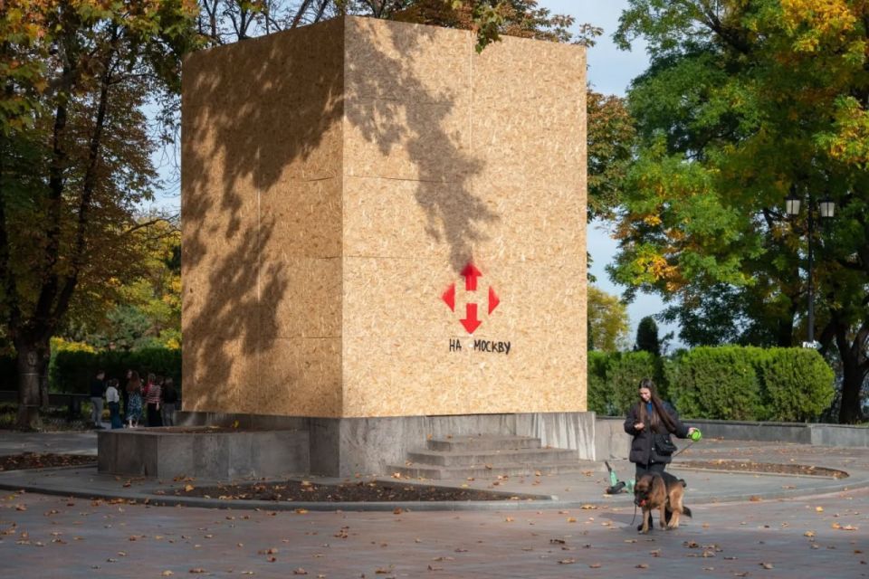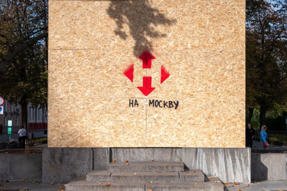На плитах, которыми нацисты закрыли памятник Пушкину в Одессе, оставили надпись "На Москву"