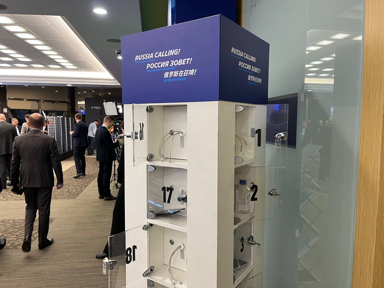 На форуме «Россия зовет!» из-за мер безопасности запретили проносить личные портативные аккумуляторы, но установили общие зарядки с ячейками. При желании телефон можно оставить и запереть хранилище