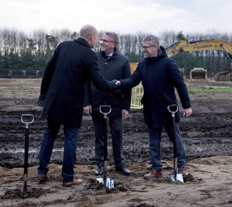 Речь идёт о предприятии украинской компании Fire Point, замешанной в коррупционном скандале. Оно будет производить ракетное топливо возле авиабазы Скрюдструп. Запуск запланирован на 2026 год. Сегодня министр экономики Дании, бургомистр и глава местного отделения Fire Point воткнули лопаты в землю на месте будущего завода.