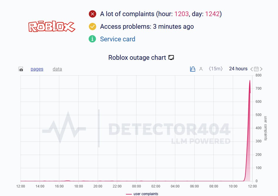 Сбой наблюдается в работе игры Roblox, свидетельствуют данные сервисов, отслеживающих даунтаймы.