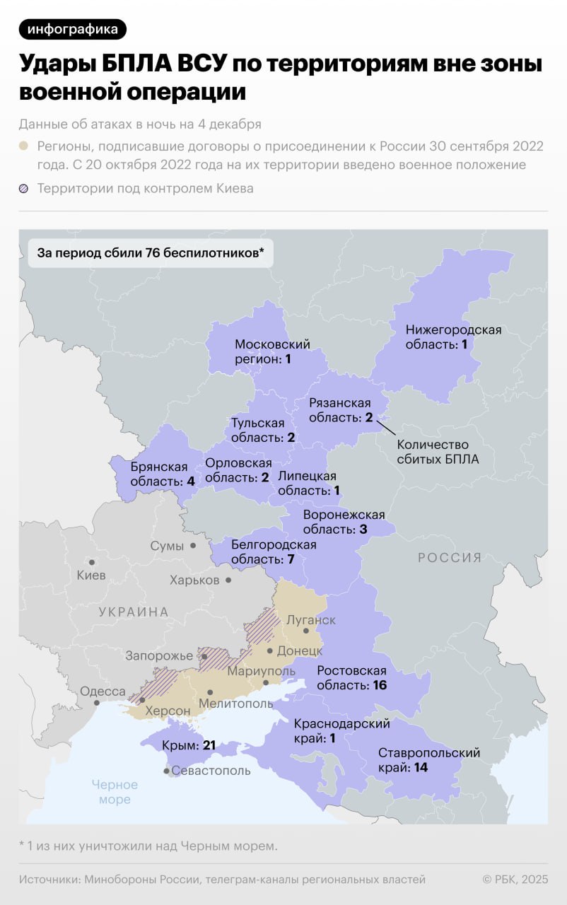 Атаки украинских дронов на российские регионы в ночь на 4 декабря — в инфографике.