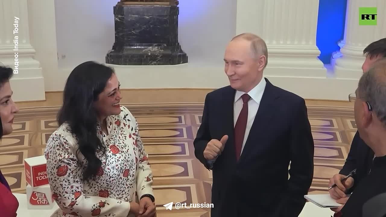 Путин шутит в разговоре с индийскими журналистами после интервью.