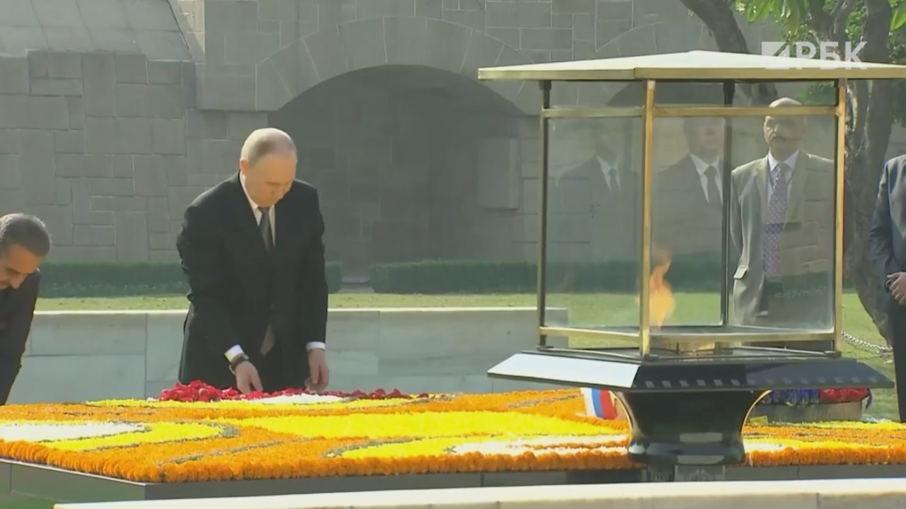 Путин возложил венок к мемориалу Махатмы Ганди в Нью-Дели.