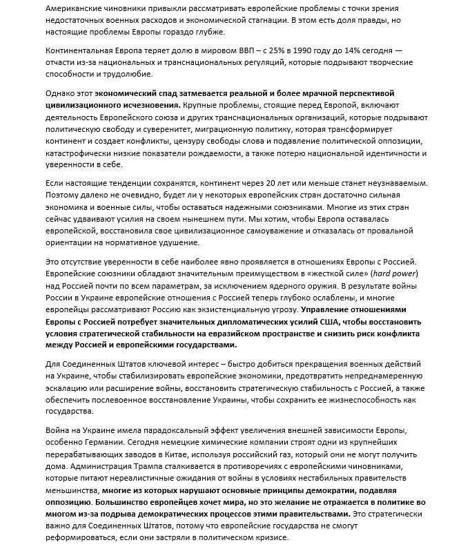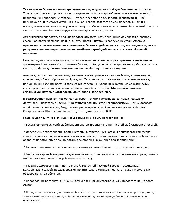Пожалуй, самая важная часть Стратегии – раздел о Европе (перевод прилагается ).