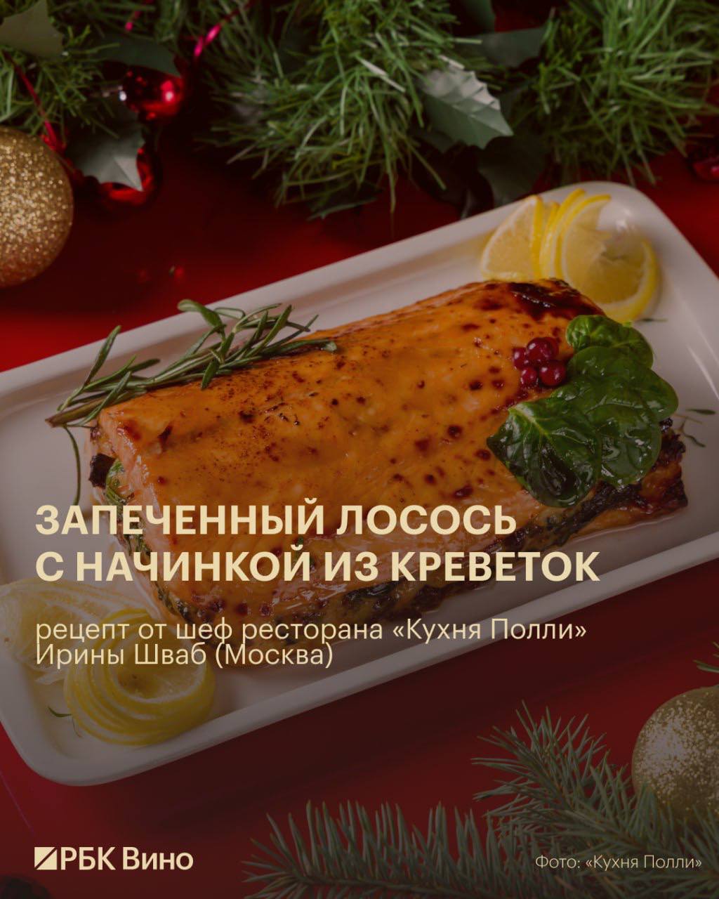Один из рецептов — запеченный лосось с начинкой из креветок от шефа ресторана «Кухня Полли» Ирины Шваб (Москва).