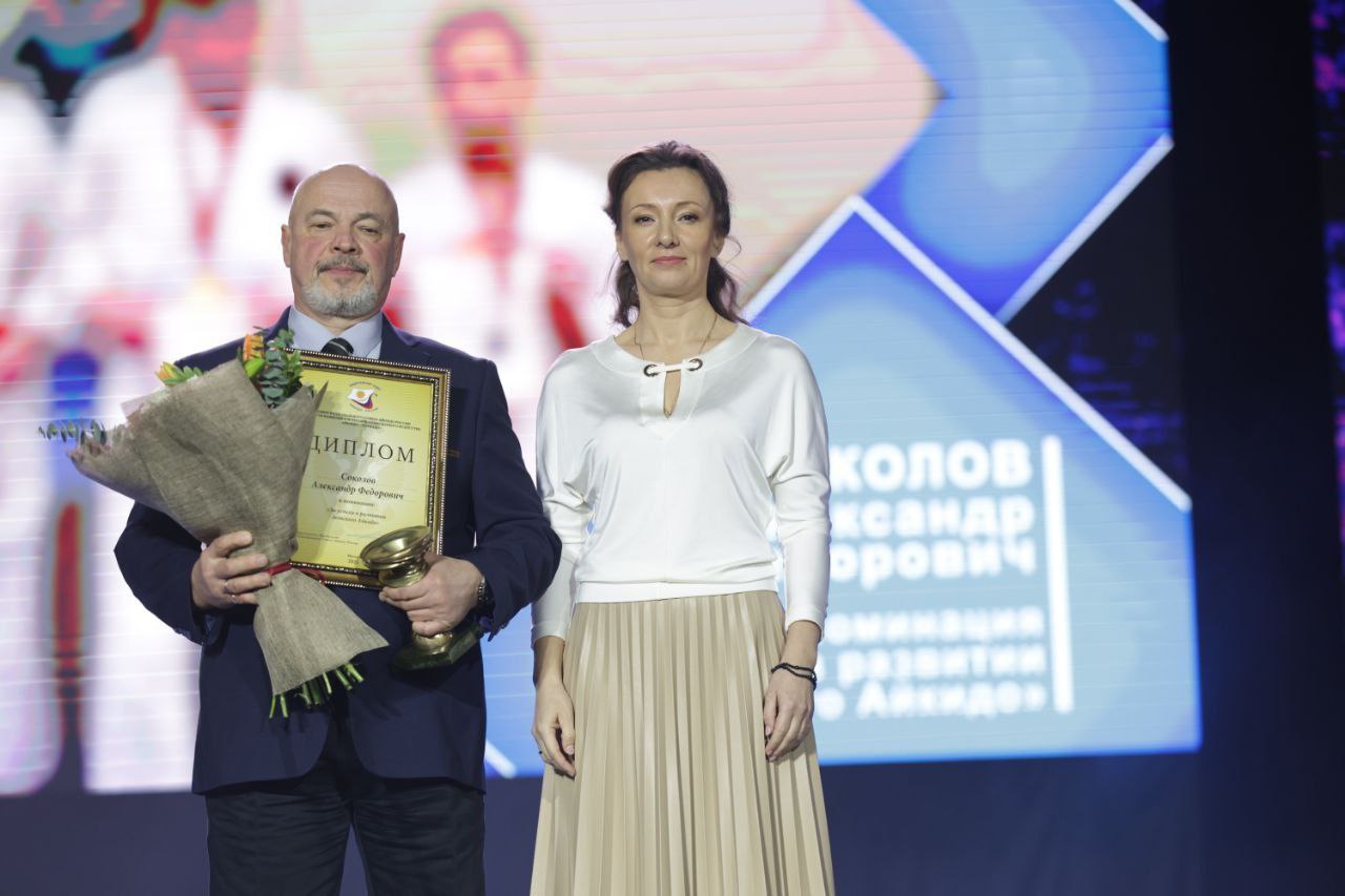 В номинации "За успехи в развитии детского айкидо" вручила награду обладателю пятого дана айкидо, вице-президенту Федерации айкидо Санкт-Петербурга Александру Федоровичу Соколову. Уже не первый год вручаю премию именно в этой, «детской» номинации. Для меня очень важно поддержать профессионалов своего дела, которые ведут за собой детей, являются для них примером. Ведь для ребят, для их становления, выбора жизненного пути личный пример наставника имеет порой решающее значение.