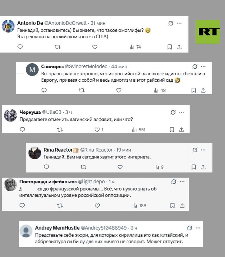 «До****ся до французской рекламы... Вс, что нужно знать об интеллектуальном уровне российской оппозиции»;
