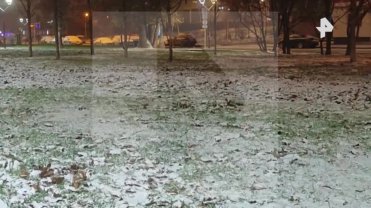 Зеленая трава наконец "укрылась" снегом в Москве.