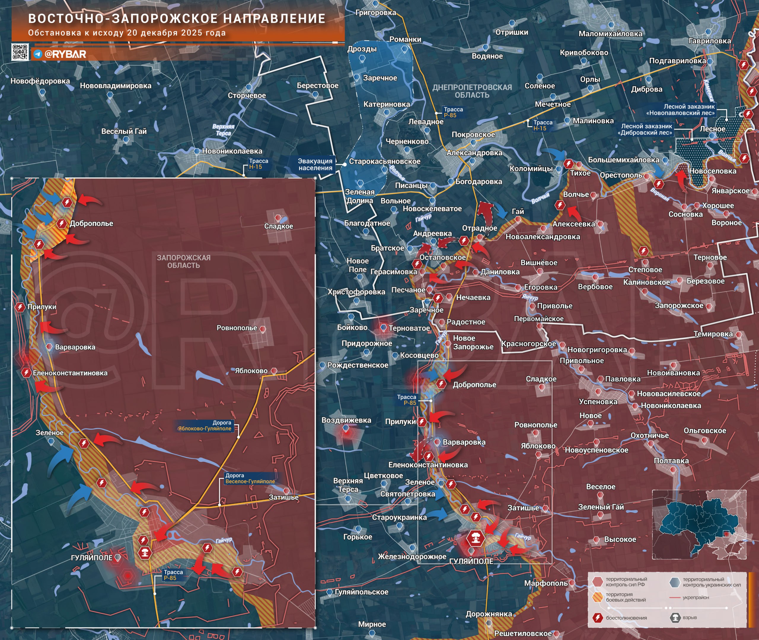 На Восточно-Запорожском направлении воины-дальневосточники продвигаются вглубь застройки в центре Гуляйполя, а в Доброполье украинские формирования осуществили вылазку в центр села.