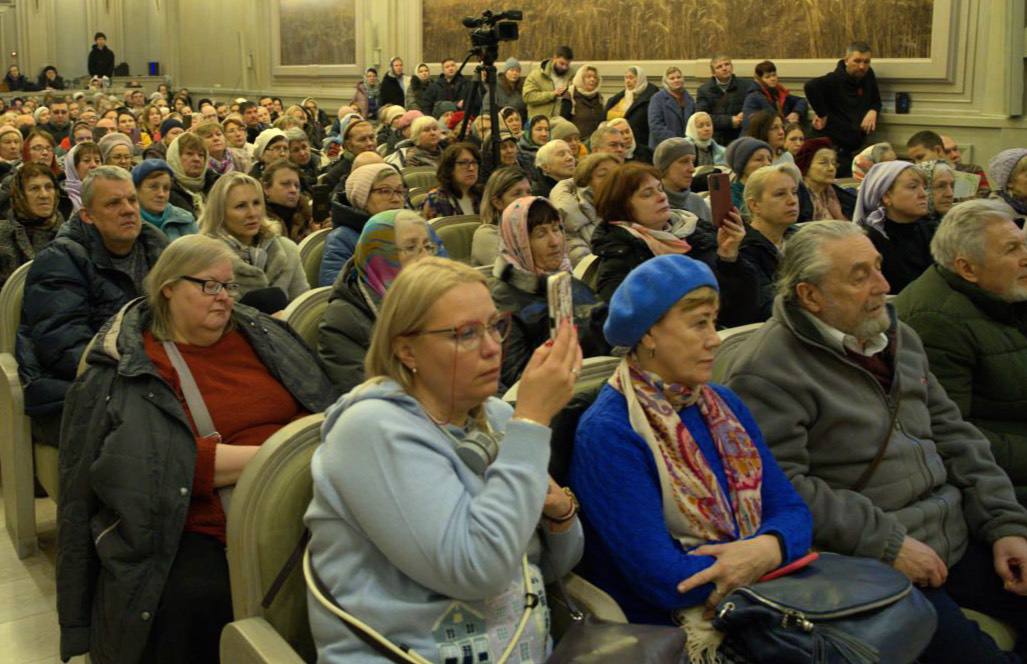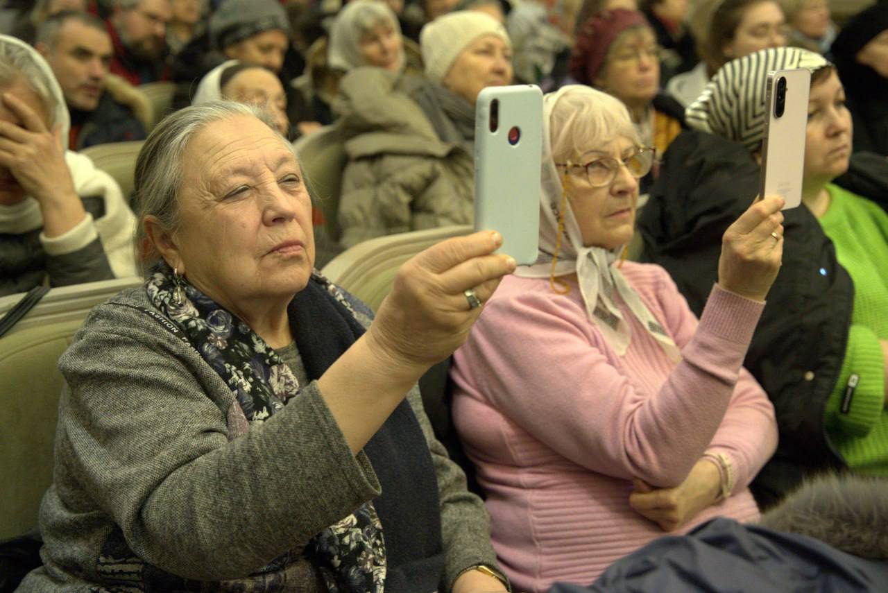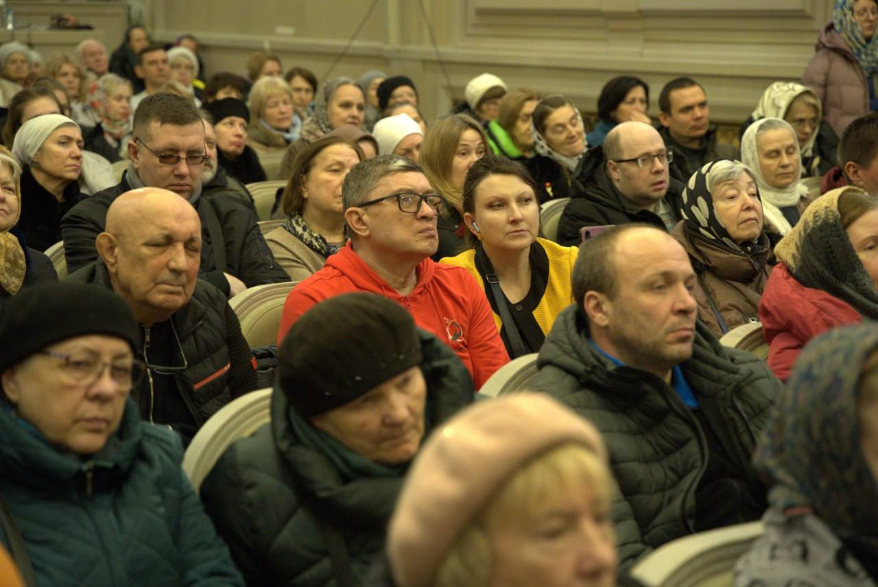 Пришли, чтобы прикоснуться к этому Рыльскому Евангелию. Полный зал людей в Сретенском монастыре. И люди только приходили и приходили.