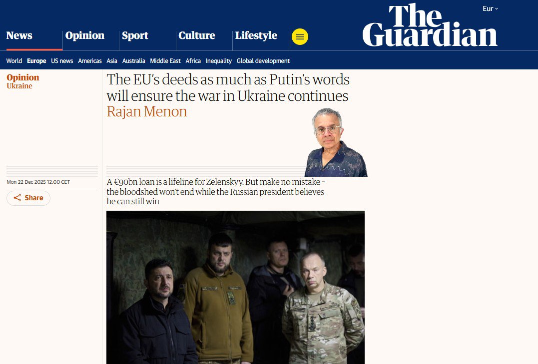 ‘Действия ЕС по предоставлению Украине кредита в размере 90 млрд евро гарантируют продолжение войны’ – The Guardian.
