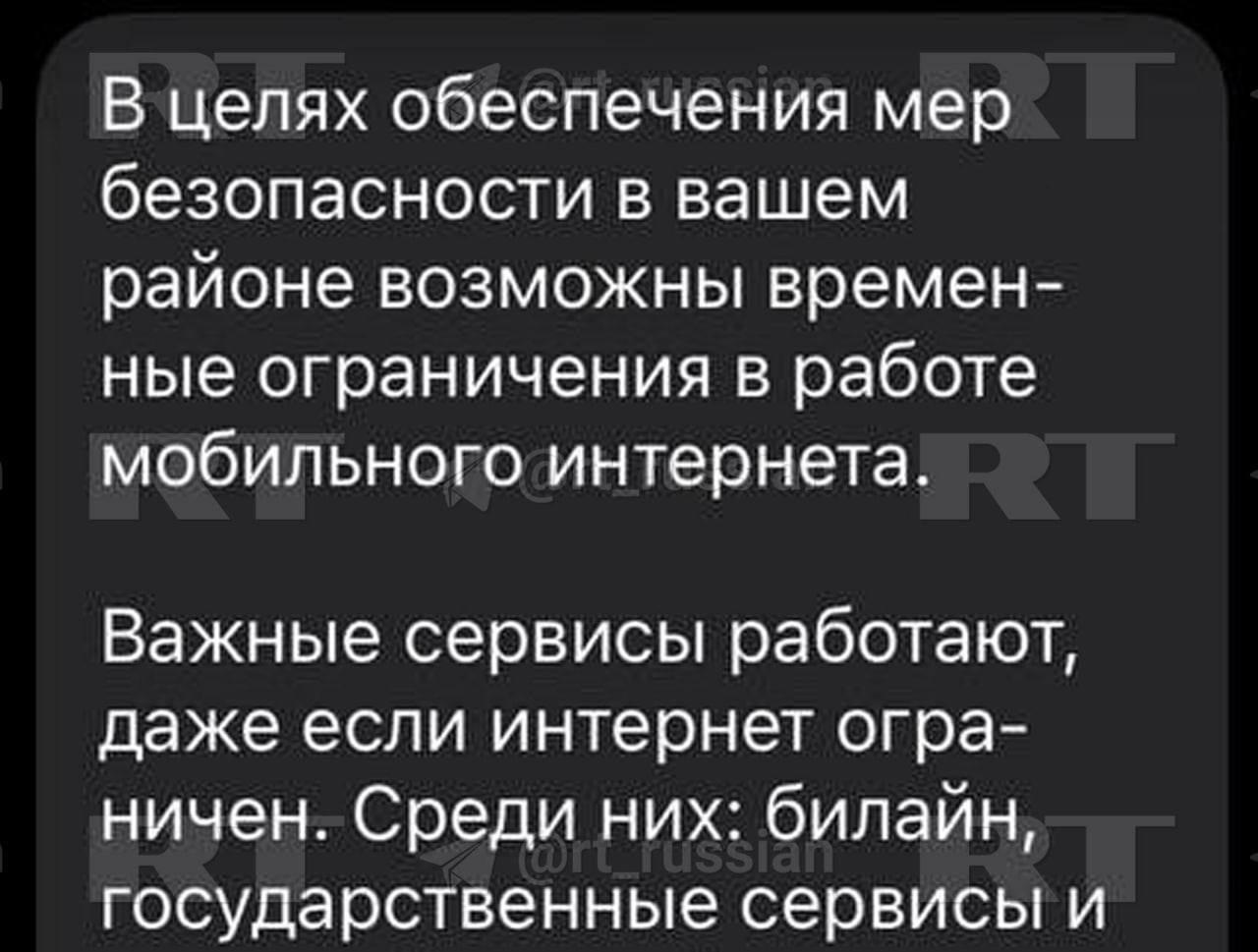 Оператор сотовой связи предупредил об ограничениях мобильного интернета в Петербурге, сообщил подписчик RT.