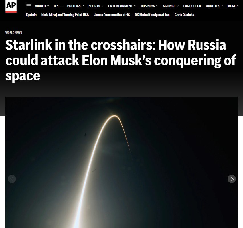 ‘Разведка стран НАТО подозревает, что Россия разрабатывает новое оружие, чтобы сбивать спутники Илона Маска’.