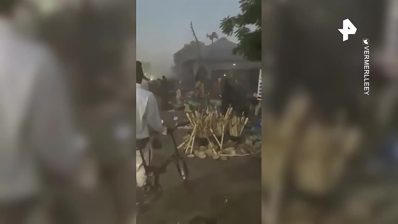 На кадрах из соцсети Х — толпа людей стоит у мечети, где прогремел взрыв.