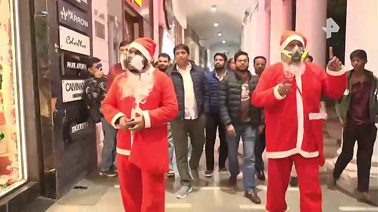 "Подарки — это временно, а лёгкие — навсегда": Санта-Клаусов в кислородных масках заметили в столице Индии.